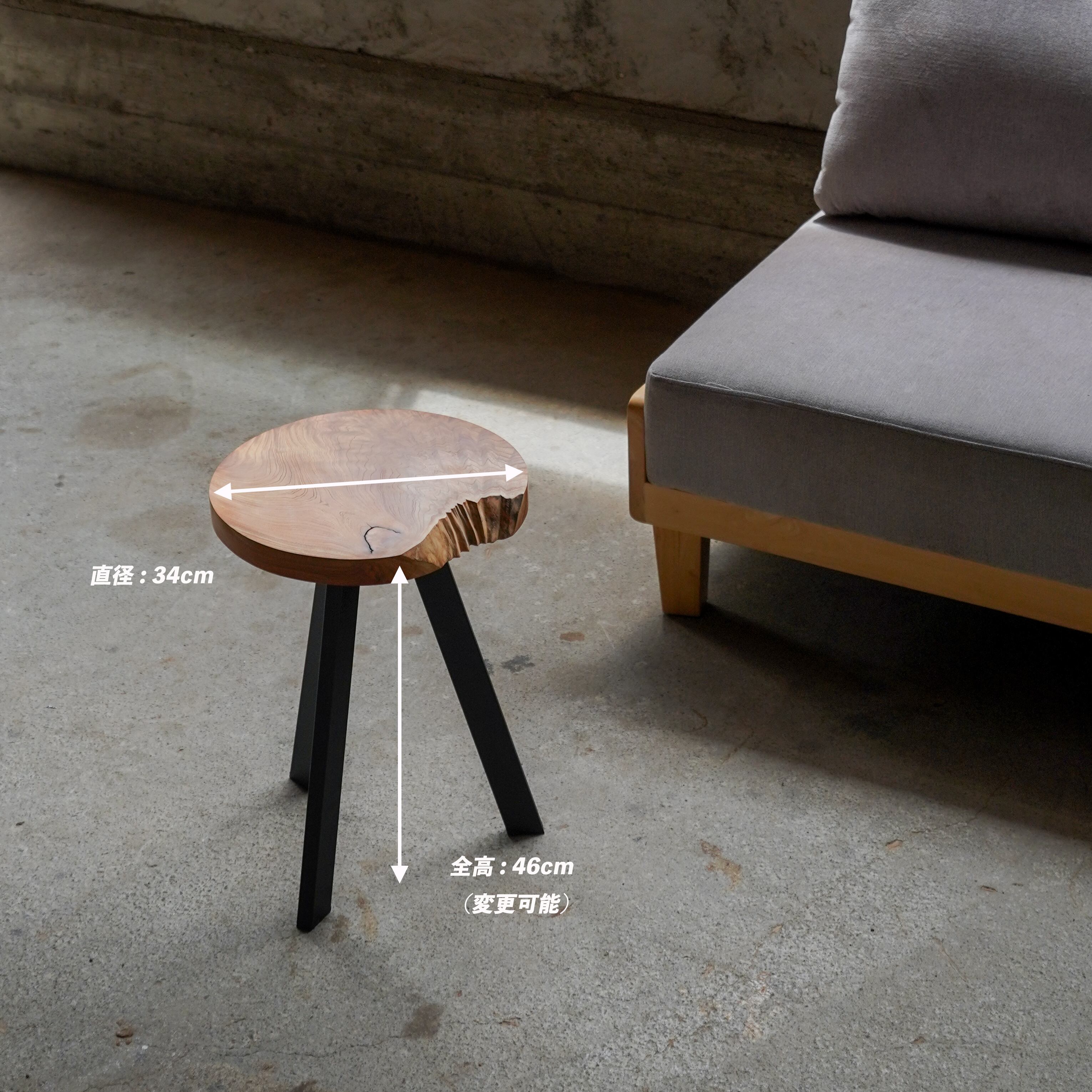 欅の一枚板を丸くカットして製作したサイドテーブルです。