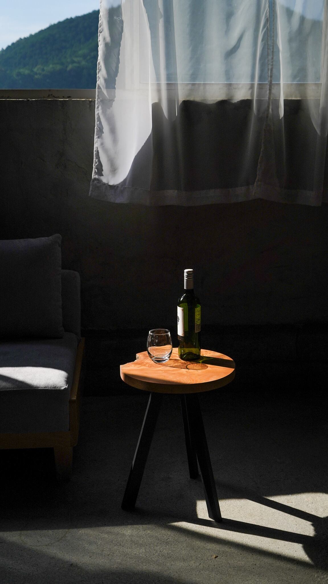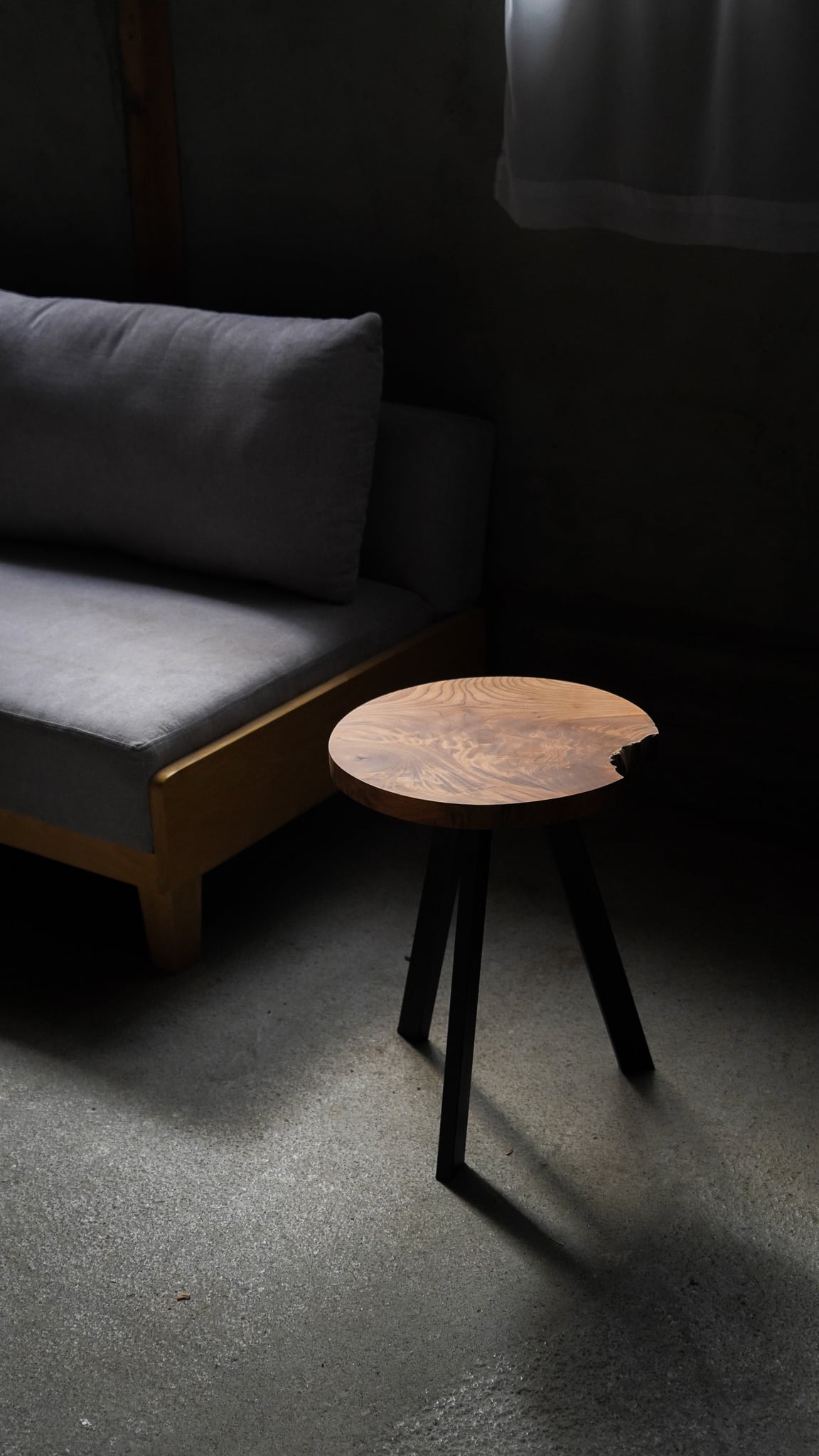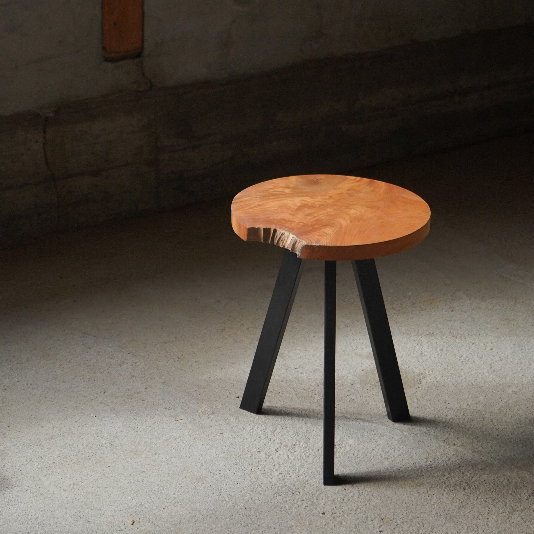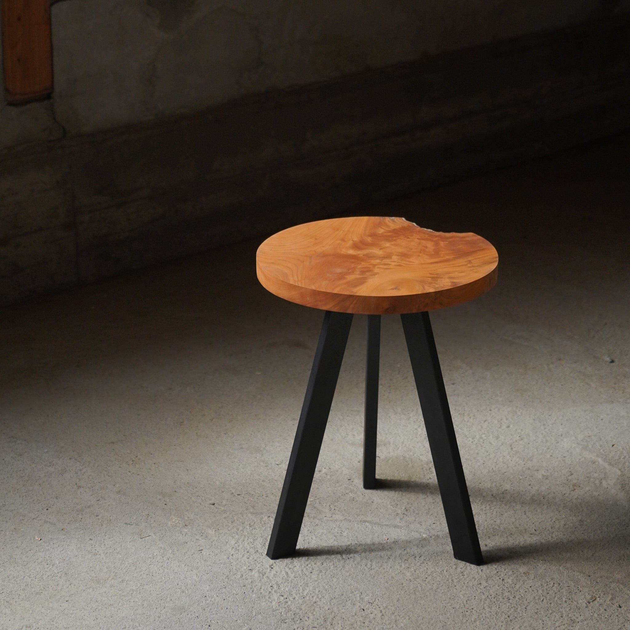 欅の一枚板を丸くカットして作ったサイドテーブルです。