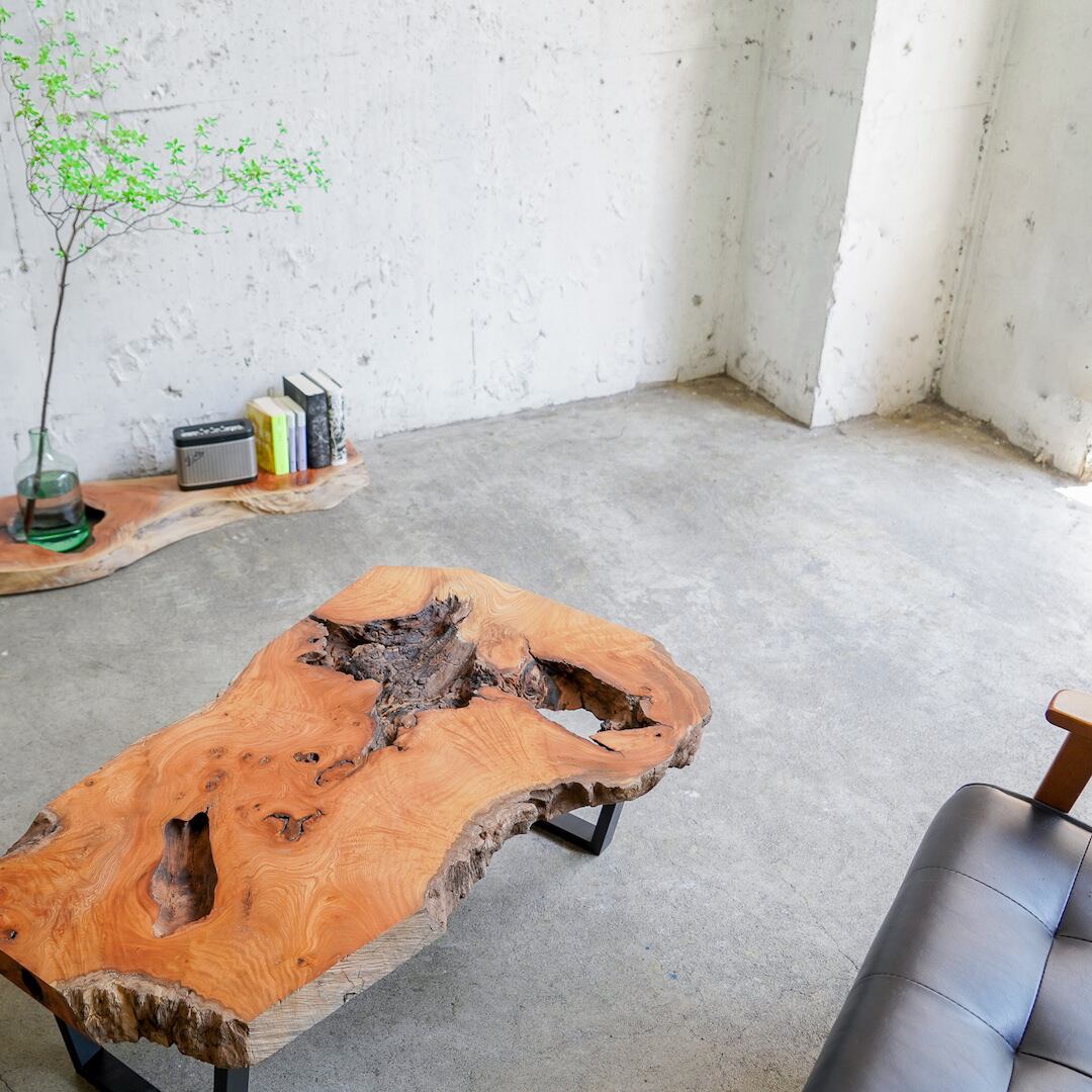 超個性的な欅の一枚板で作った大きなセンターテーブルです。