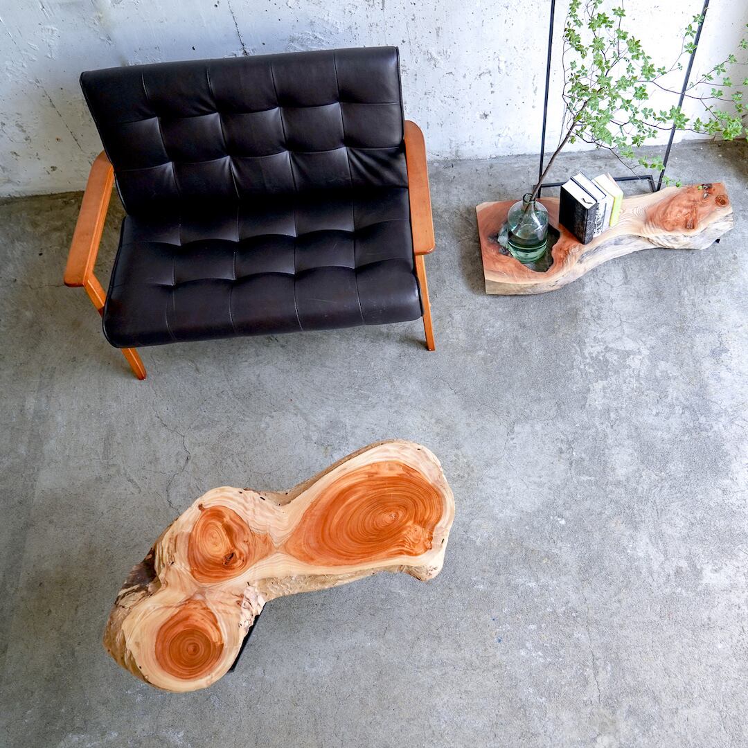 かわいらしい形をした欅のスライスで造ったローテーブルです。