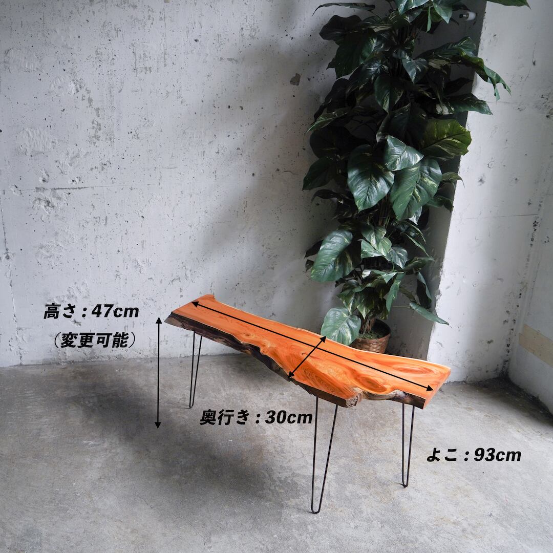 聞き慣れない名前ですが針葉樹の中では比較的硬く丈夫な樹種です。加工しやすく見た目も美しいのでその用途は多岐にわたります。強度が求められる建材や家具材、仏具など繊細な工芸品から彫刻に至るまでなんにでも使う素材です。一般的には樹齢を重ねるほどオレンジ色が鮮やかになります。製材してしまえば経年で徐々に落ち着いてくるそうですが、変化するのならそれも楽しむことができそうです。本素材も美しいオレンジ色が特徴。自然に残った樹皮は出来るだけ保護しています。