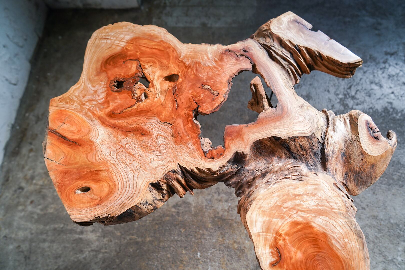 良木の代名詞である欅ですが実はその品質はピンキリで、悪いものは天板に使えないくらい内部がスカスカの素材もあります。