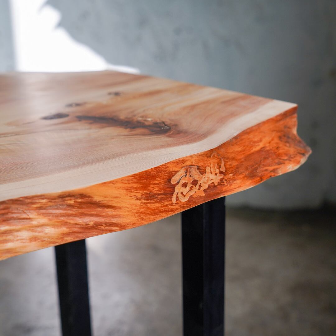 やんわりとした曲線も程よくポツポツと点在する節やエッジから生えている枝が動きとなって楽しませてくれます。これらはご存知のように本来であれば木材の欠点なんですが、昨今の価値観ではむしろあった方がいいよね、という風潮になりつつあるように思います。