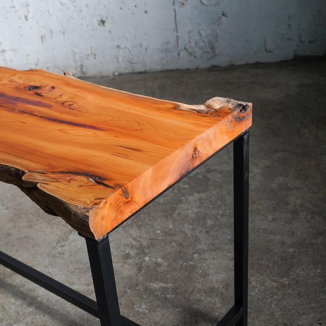 本作のような美しくてバランスのよい「動き」がある一枚板の方が、スッとスマートで欠点のない一枚板よりも数は少なく、本当に希少なんです。