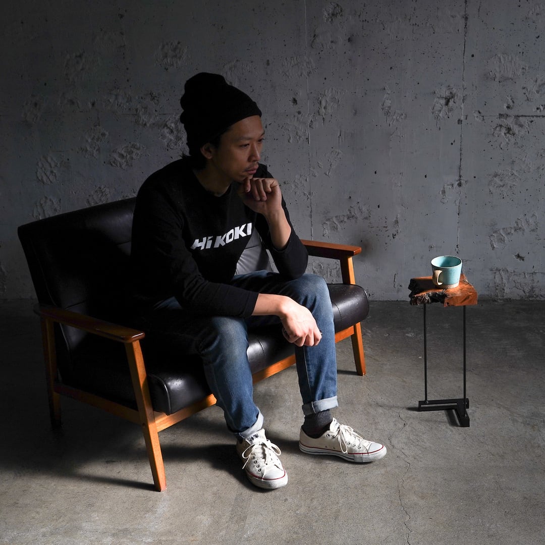 アイアン脚は雰囲気を軽くすることで、これも天板を強調させようと意図しています。ミニマルデザインなのでどしっとした安定感はありません。よって毛足の長いラグの上での使用はあまりお勧めしません。