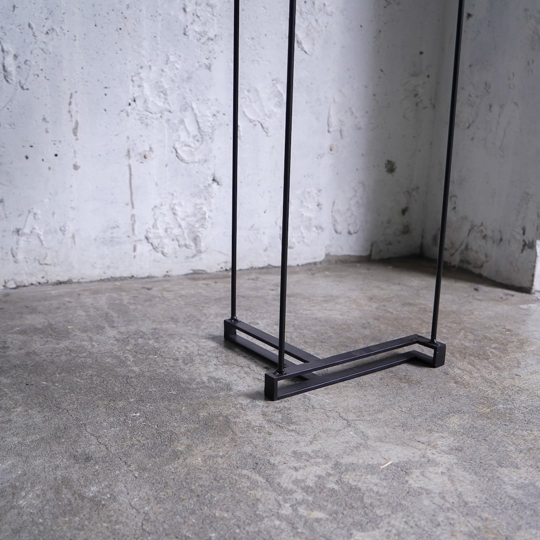もちろん細い丸棒を使っているのは、出来るだけアイアン脚の印象を軽くして、天板及びディスプレイする物を引き立てたいからです。