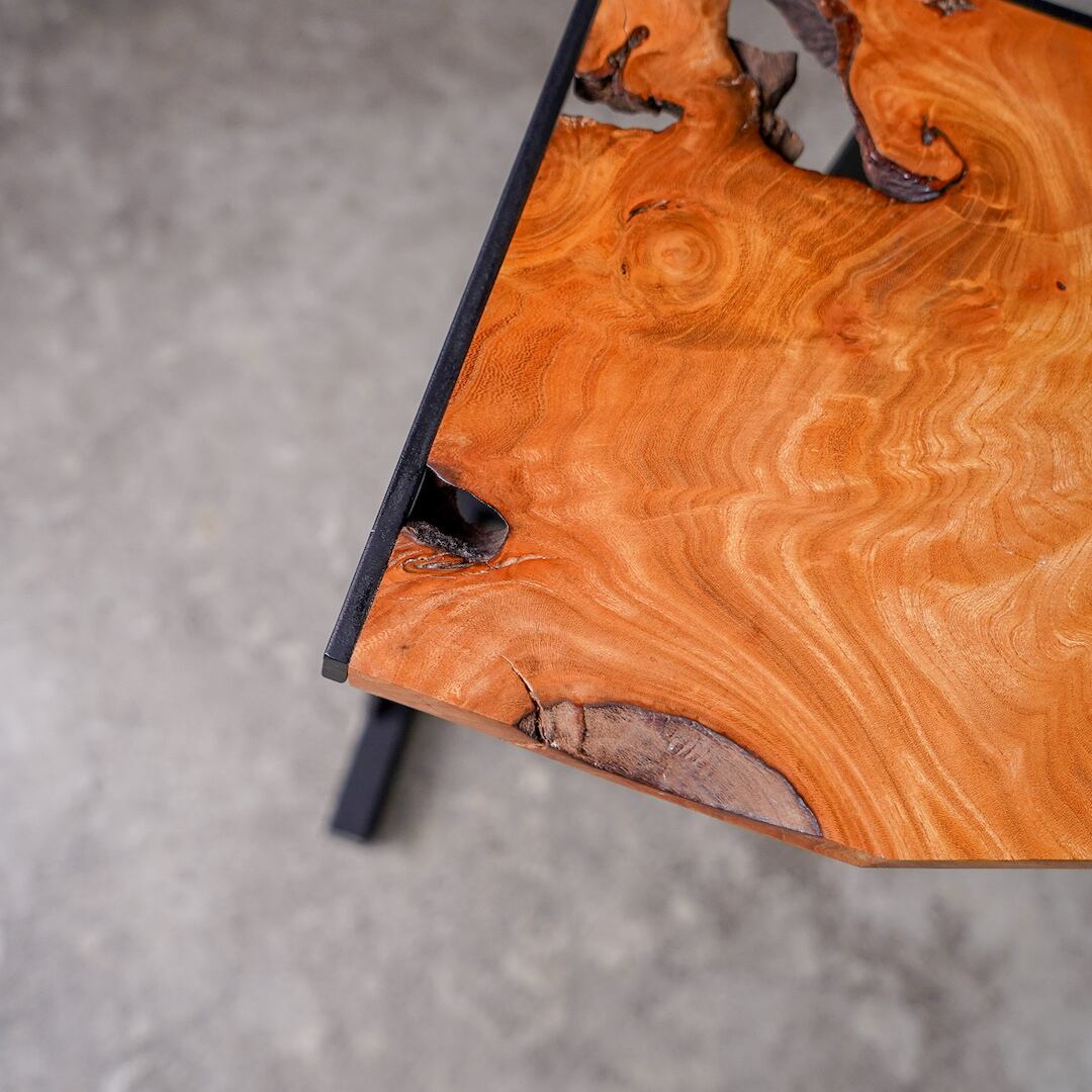 本作の場合は木目の流れと穴です。穴についてはこれをエッジに配置しアイアンで囲んで見た目を引き締めようという作意です。
