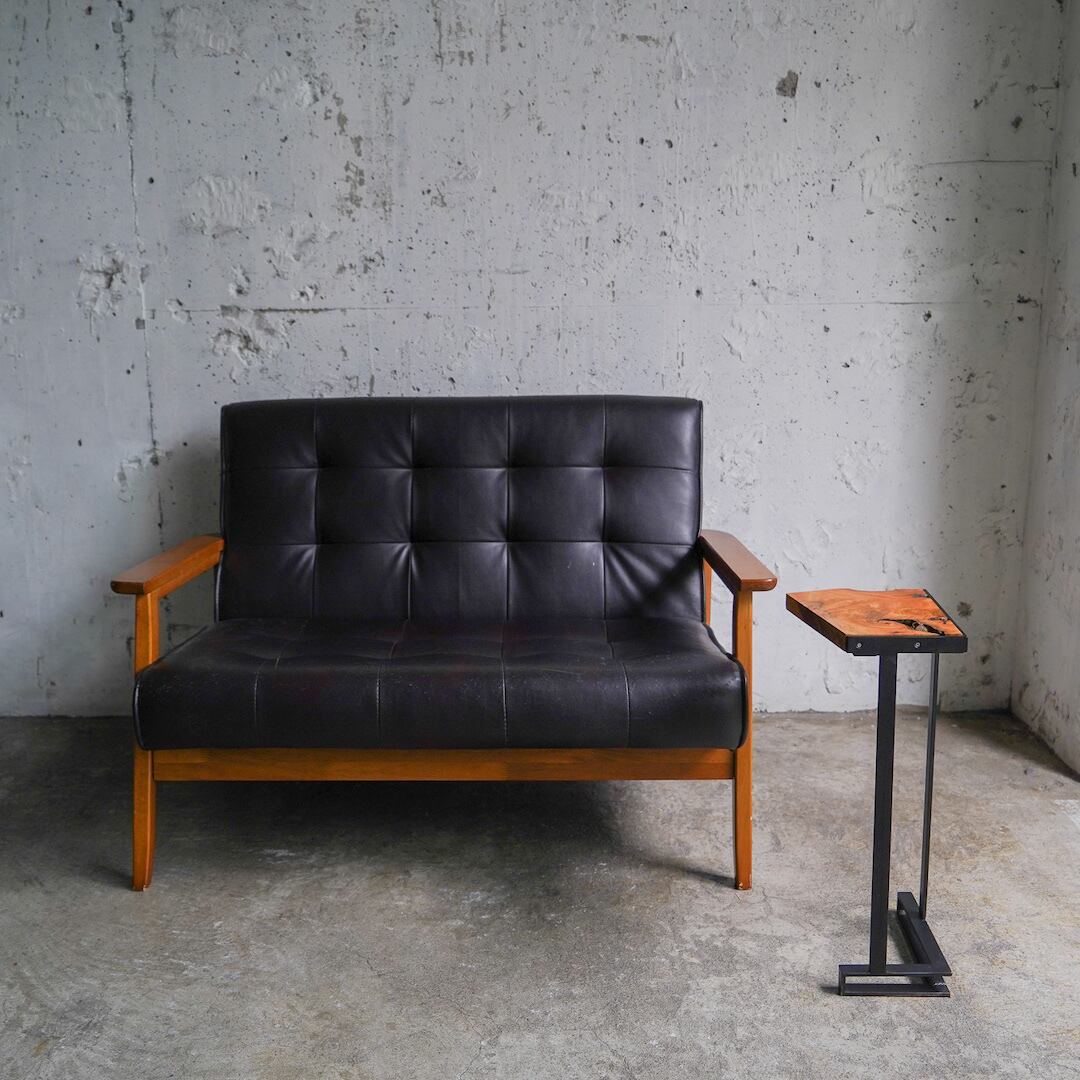 アイアン脚は雰囲気を軽くすることで、これも天板を強調させようと意図しています。ミニマルデザインなのでどしっとした安定感はありません。よって毛足の長いラグの上での使用はあまりお勧めしません。