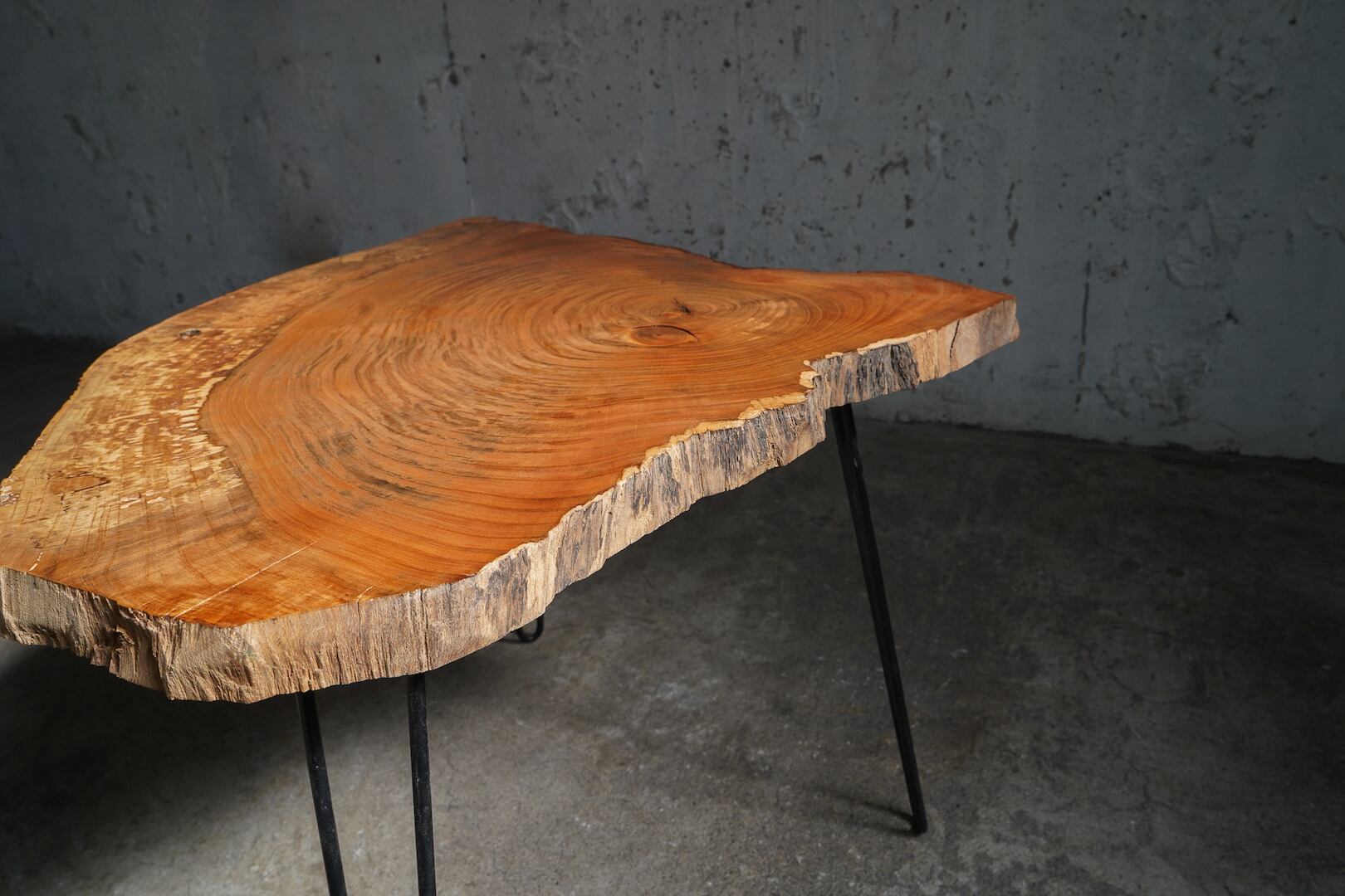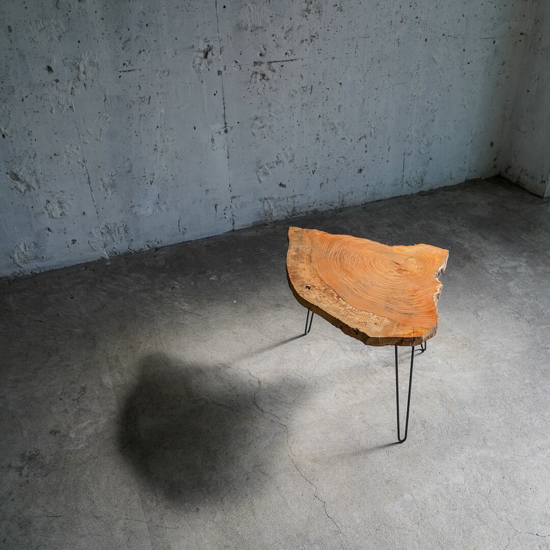 お世話になっている製材屋さんの社長さんに「必要ないから埋めてくれ」と依頼があったのですが、これは埋めるわけにはいかないと、輪切りにして保管してくれていたという奇跡の素材です。