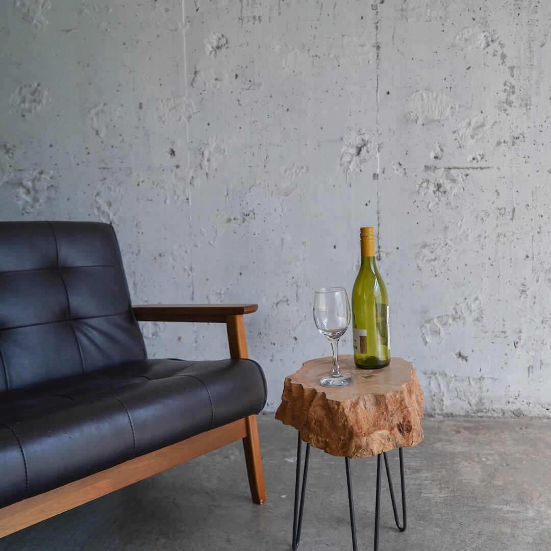 素材の魅力を引き出すためにシンプルなヘアピン脚を合わせています。