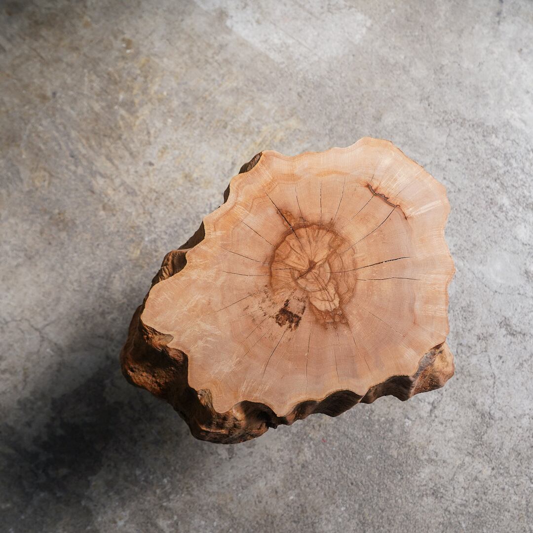 小さいながらどしっとした存在感がかわいらしい楓の輪切りのコーヒーテーブルです。