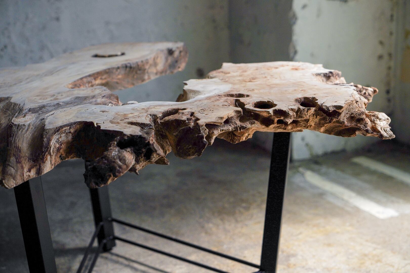 サイズ的にテーブルには向かず個性が強すぎる形ですが私はそういう木が大好きで、見つけた時はこれはいい物が出来そうだとワクワクしてしまいました。