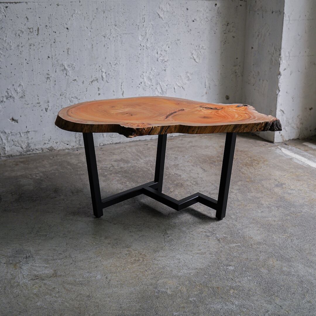 これが欅の良木だ、と言わんばかりの輪切りの一枚板でローテーブルを作りました。