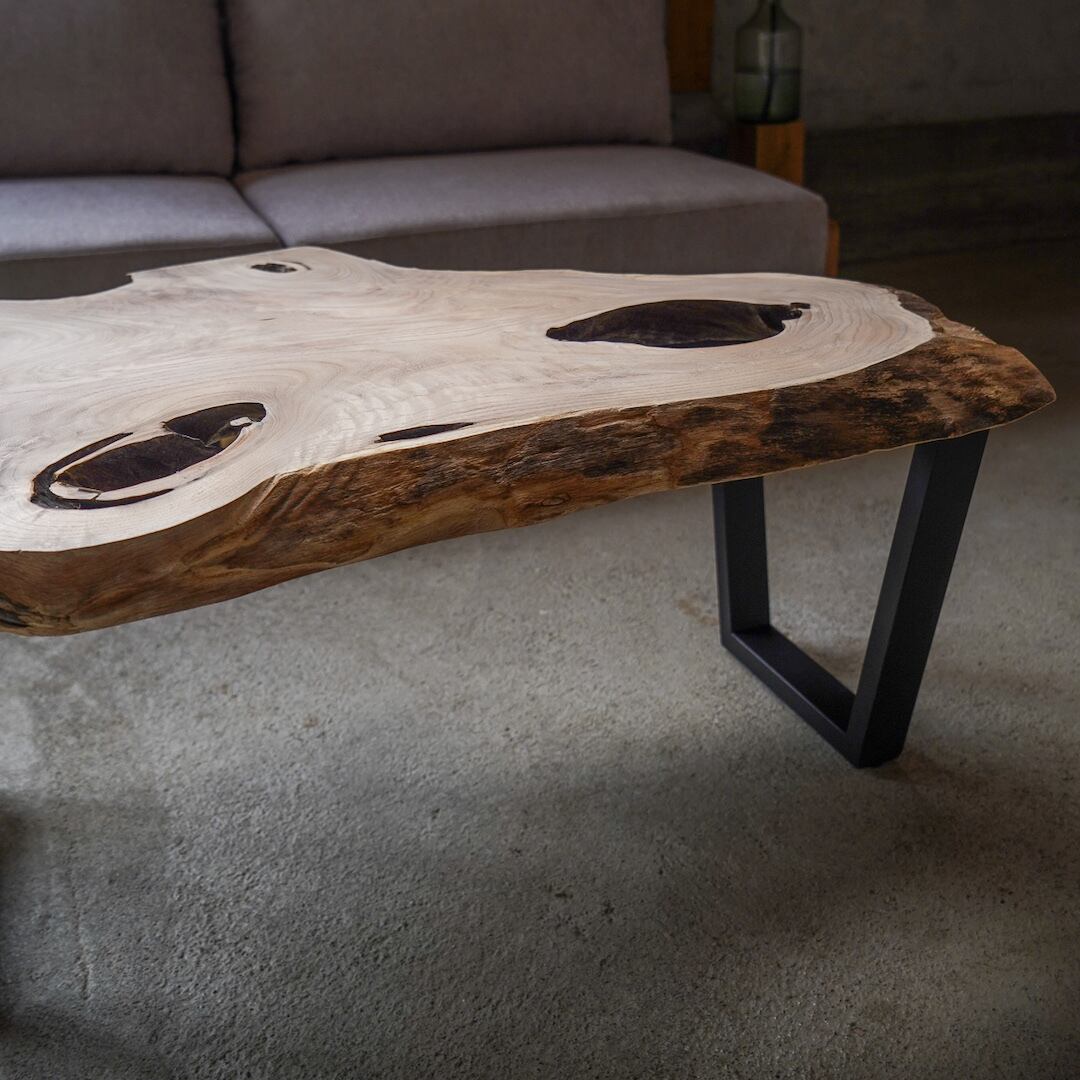コーヒーなどがテーブルについたらサッと拭けばOKです。もし跡が残ってしまったら、台所洗剤(中性の洗剤)を少し薄めてフキンにとり、トントンしてあげてください。その他の詳しいメンテナンス方法についてはご購入後にお伝えいたします。