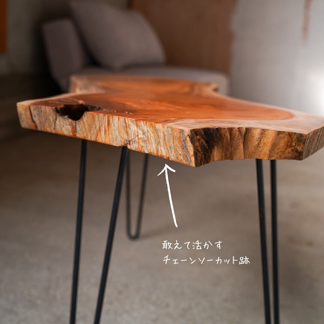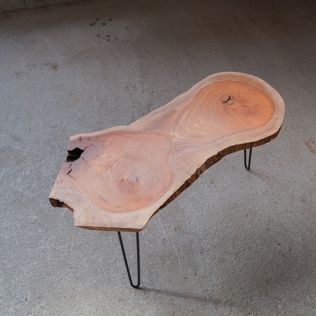 一本の主軸たる幹から2本に枝分かれした部分をスライスした素材で製作したローテーブルです。