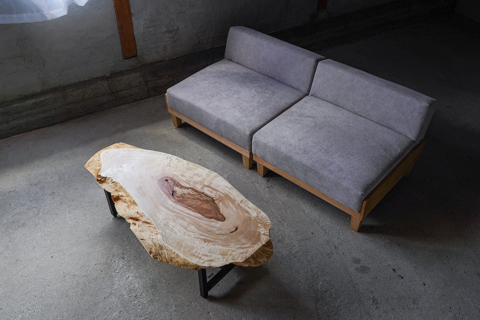 大きな栃(トチ)で製作したローテーブルです。サイズ感と厚みがあるので広い空間においてもシンボリックな存在として活用できそうです。
