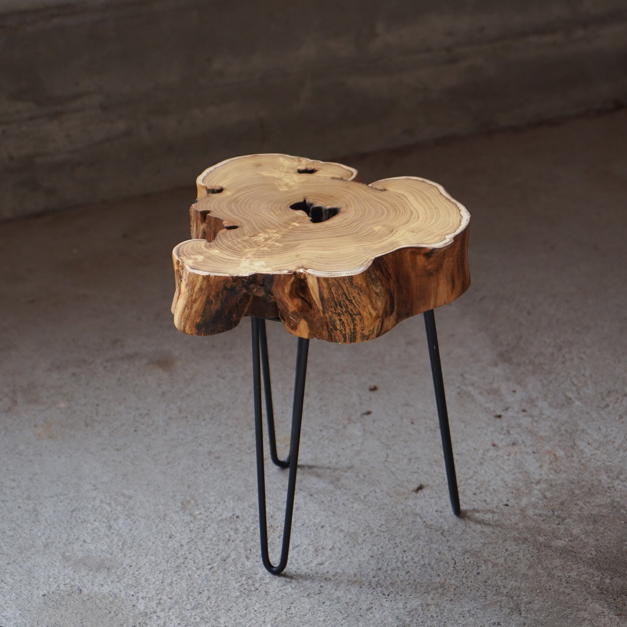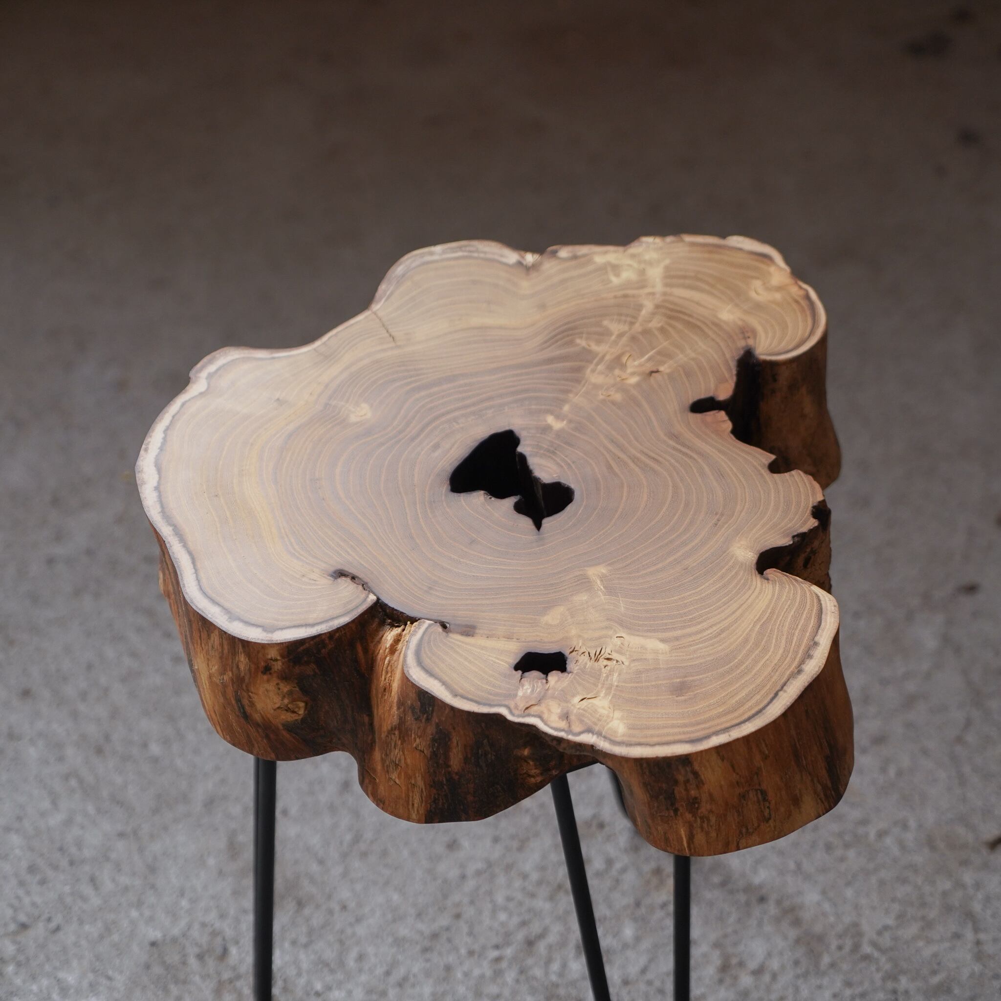 桑の輪切りで作った小さなコーヒーテーブルです。