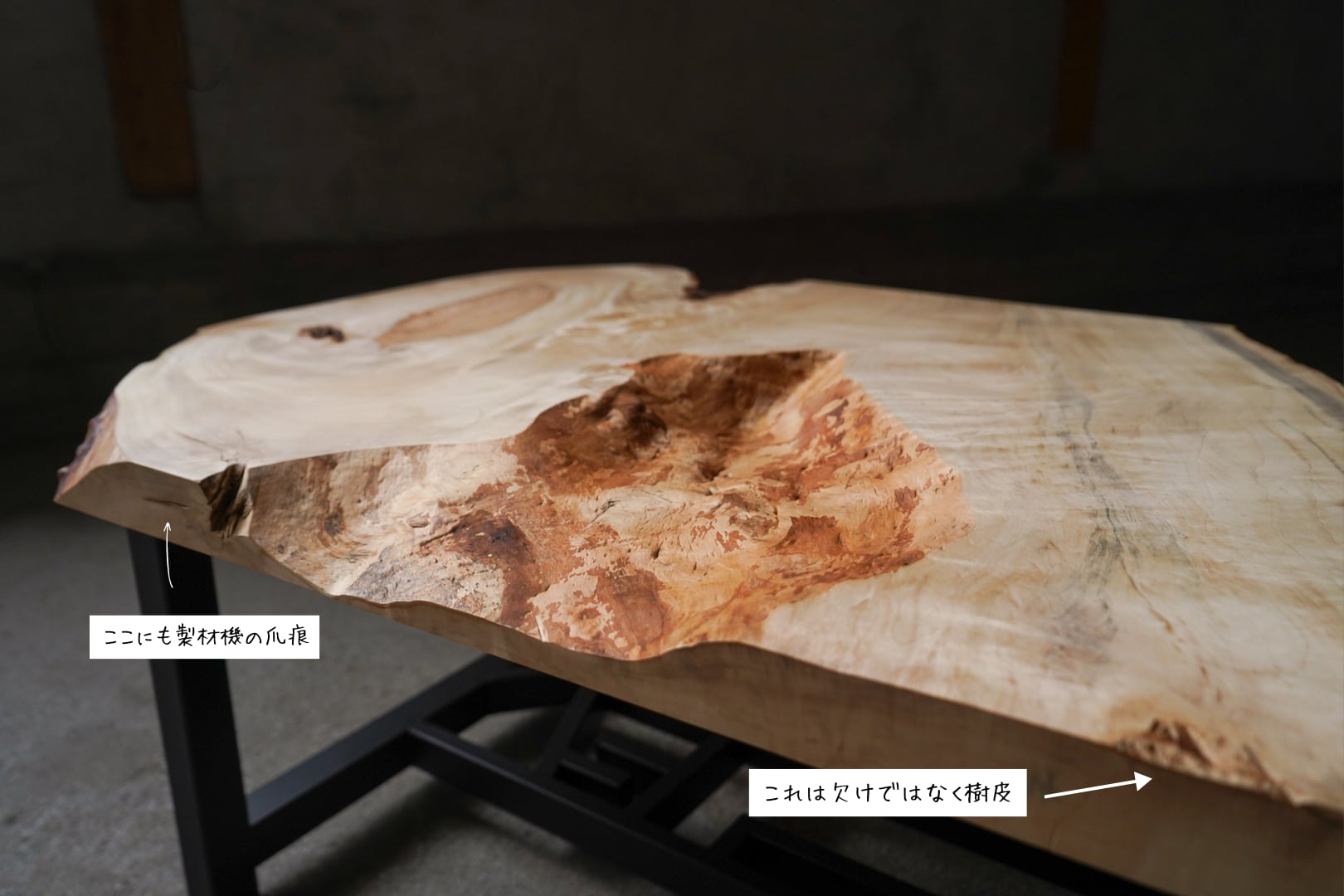 できるだけ自然な状態を楽しんでいただく為に樹皮部分の加工は最小限にとどめております。