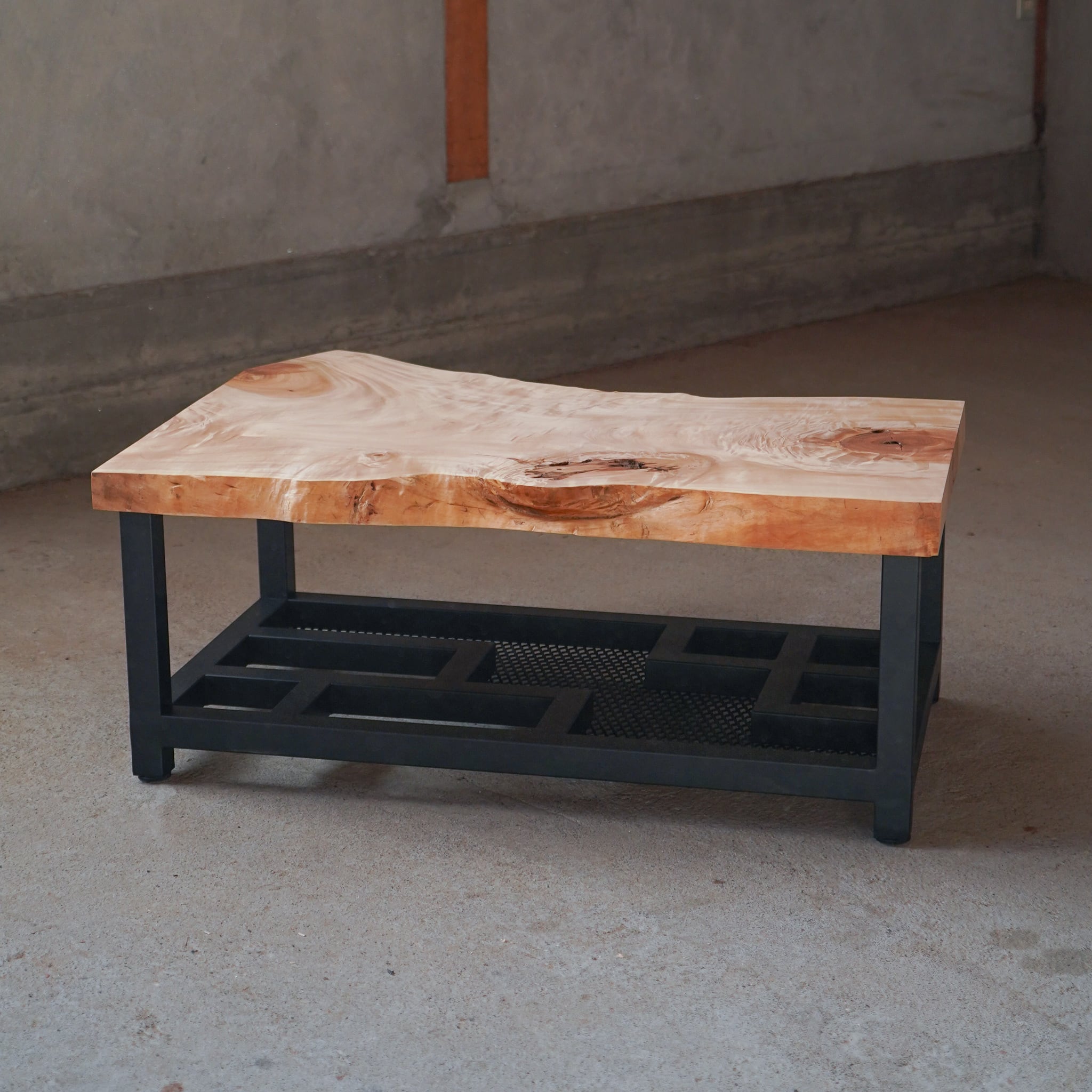分厚くて杢目が派手な「the 一枚板」という感じのトチで作ったローテーブルです。