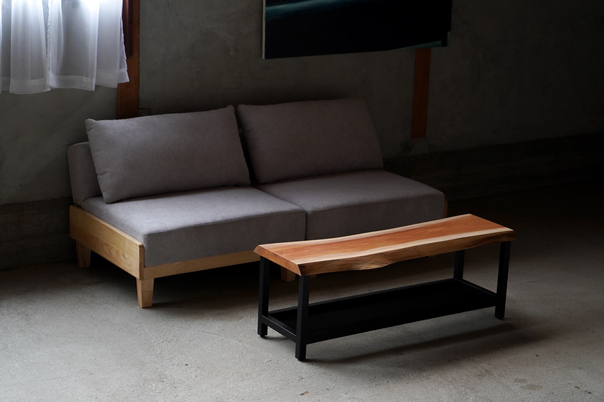 価格がリーズナブルなのは自分一人で木の仕入れ、加工、脚部の製作を行なっているからです。
