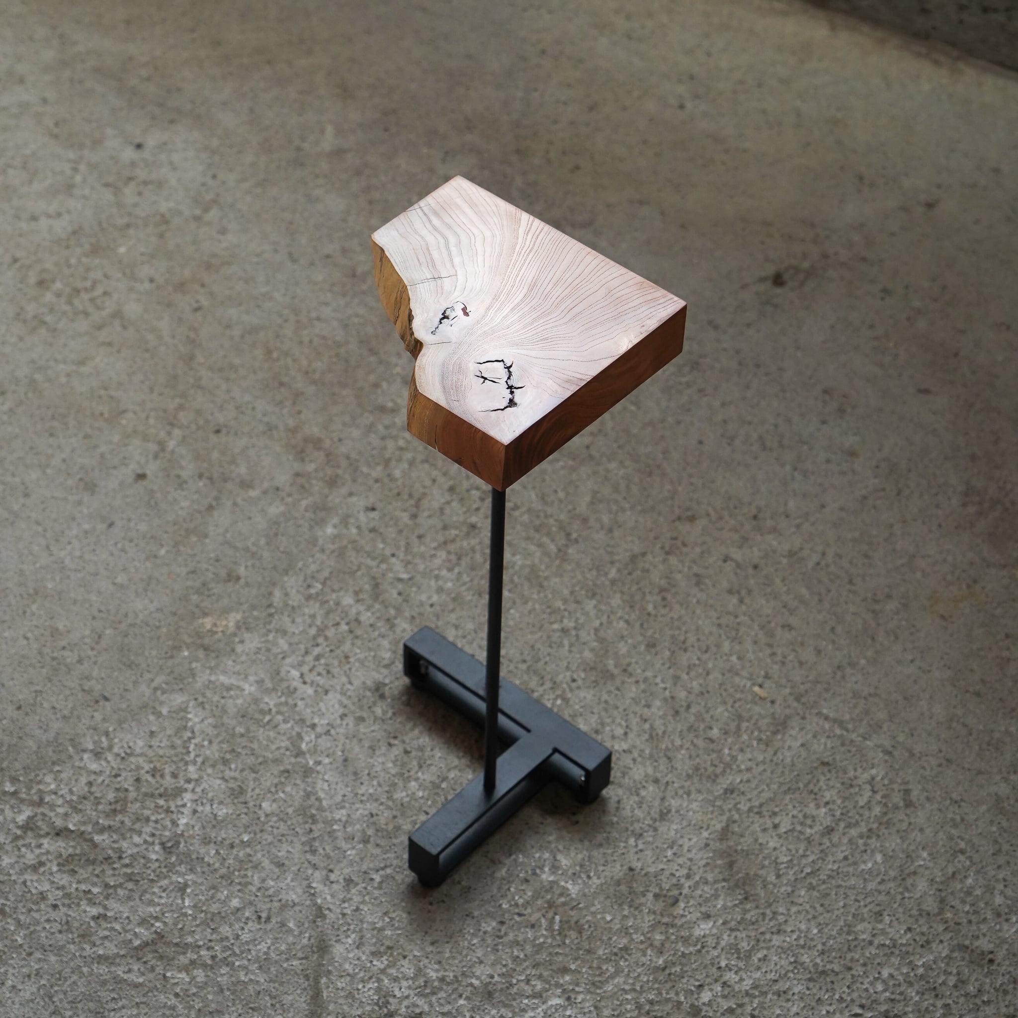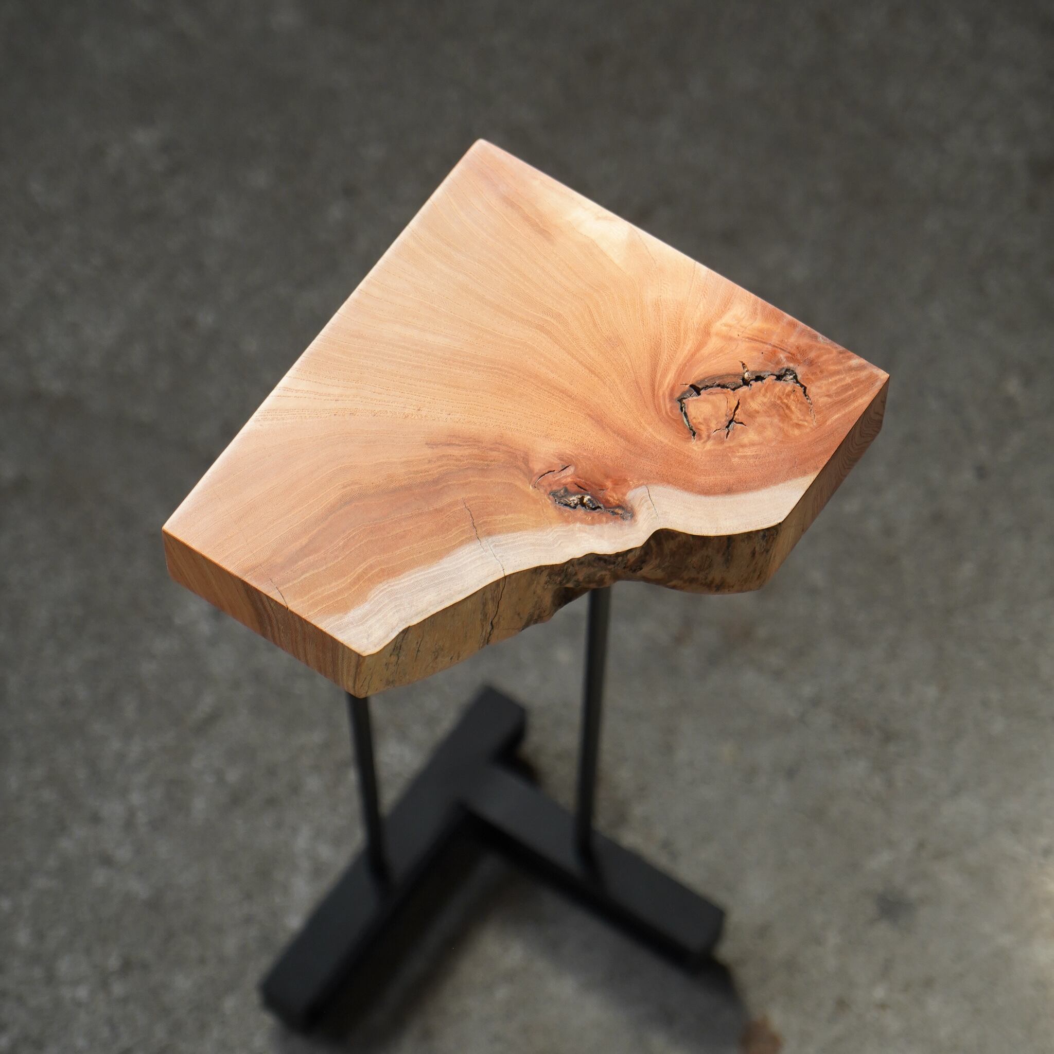 一枚板と呼んでもいいのか微妙なサイズではありますが、もともとは原木で仕入れた巨大な欅です。いいところを選んでカットし、自分が好きなデザインの脚をはかせました。