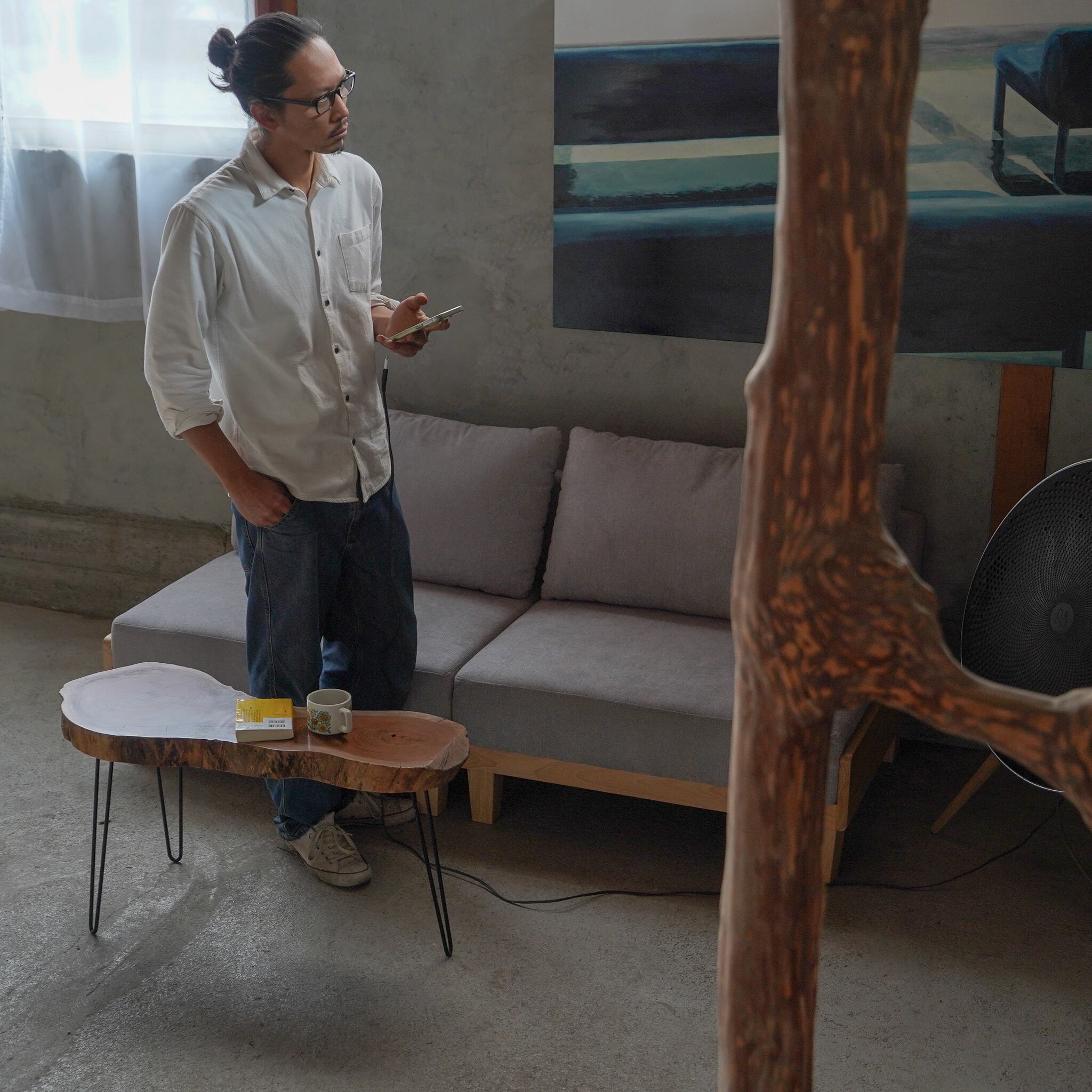 絶妙な形の欅の輪切りで作ったコーヒーテーブルです。
