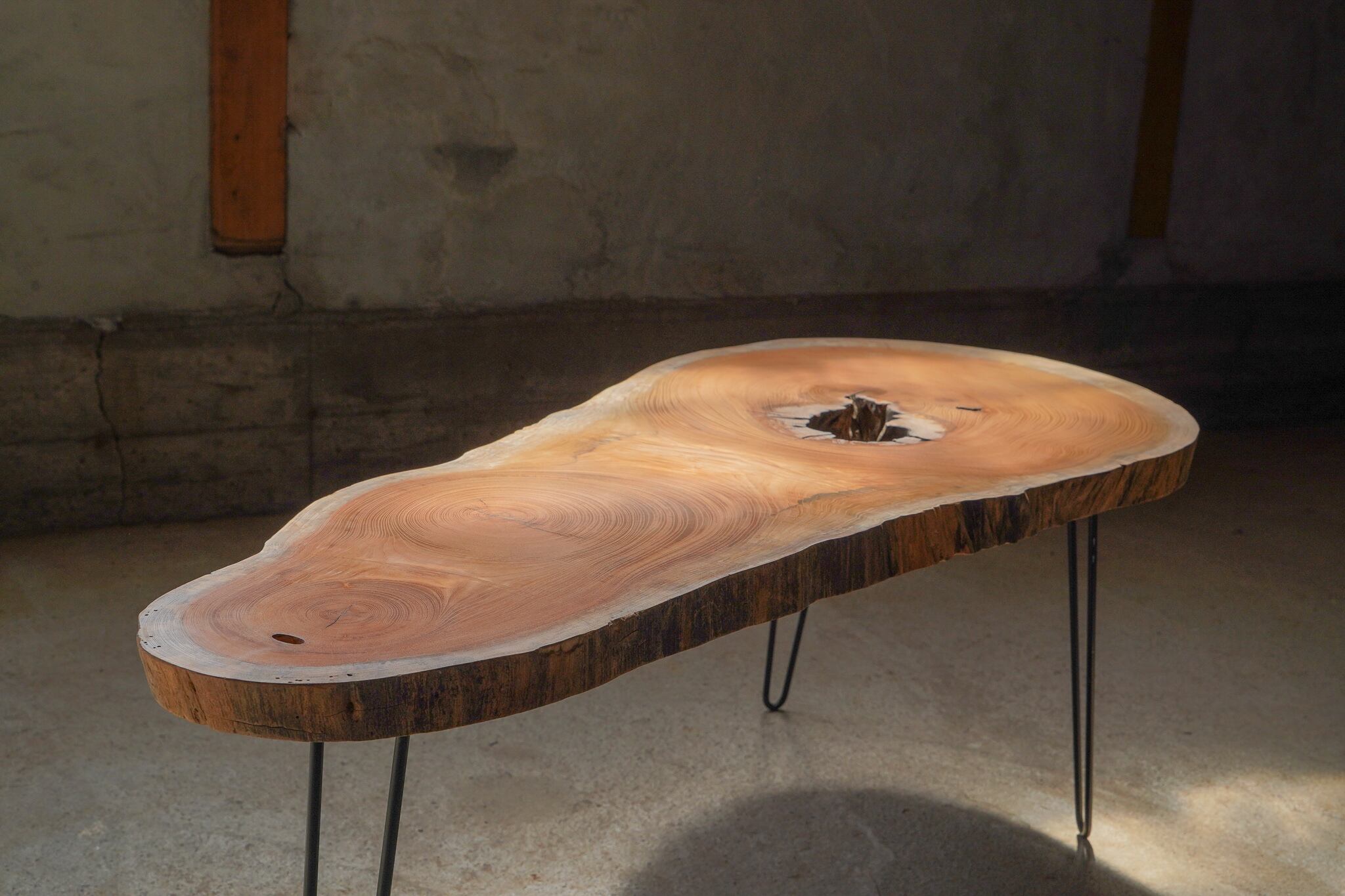 さて本材について。欅らしい硬度があり頑丈です。目もしっかりと詰まっていてその分どっしりとしています。欅の弱点である辺材もしっかりしていますので、健康な素材なんだと思います。この素材はお世話になっている埼玉県の木材屋さんから仕入れた欅なんですけど、その材木屋さんの欅はいつも本当に素晴らしいものばっかりです。目利きが良いんでしょうね。