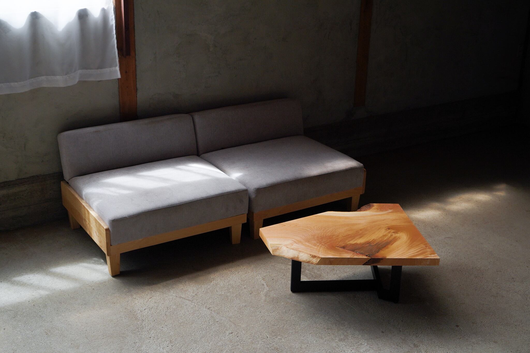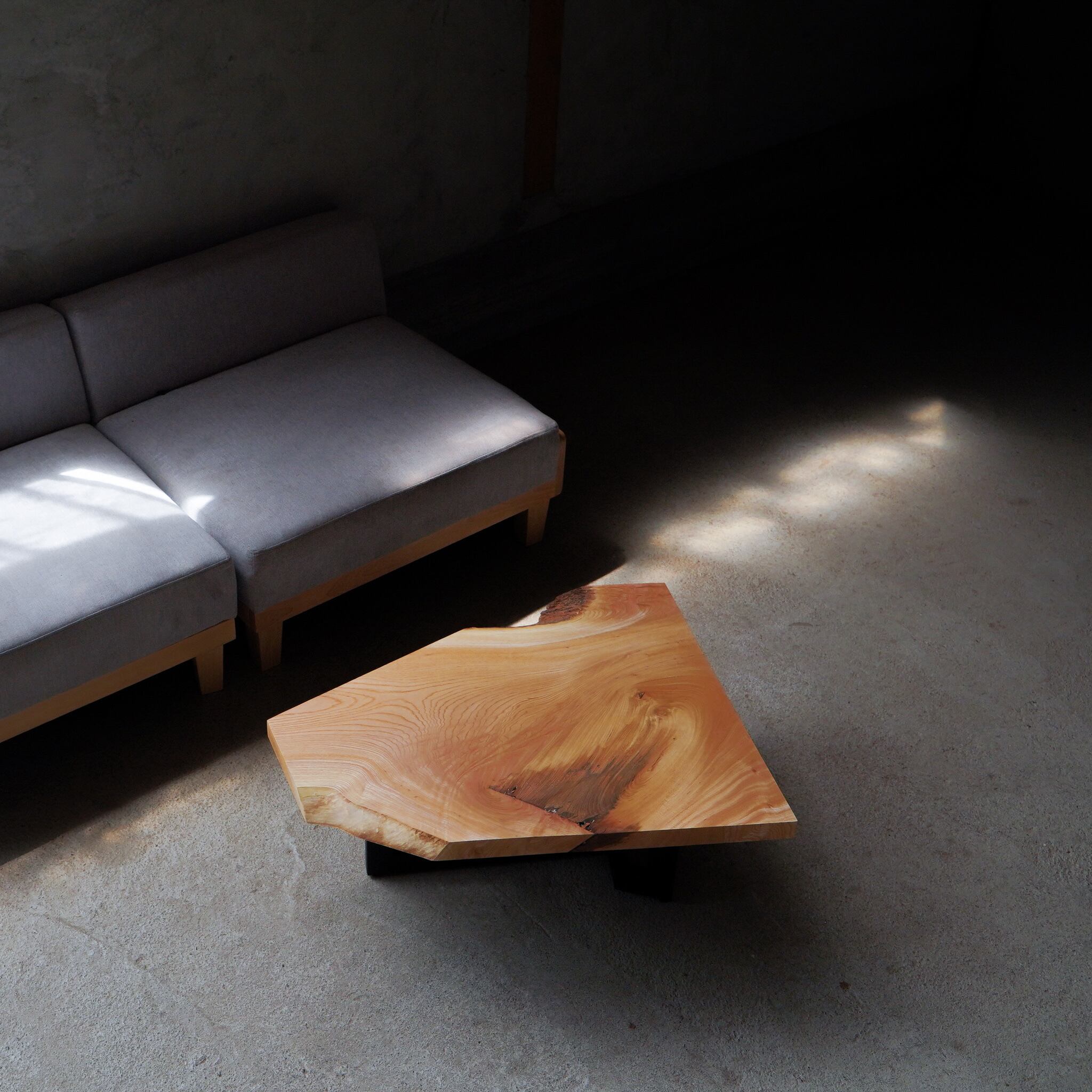 カットして整形した欅の一枚板を使ったローテーブルです。