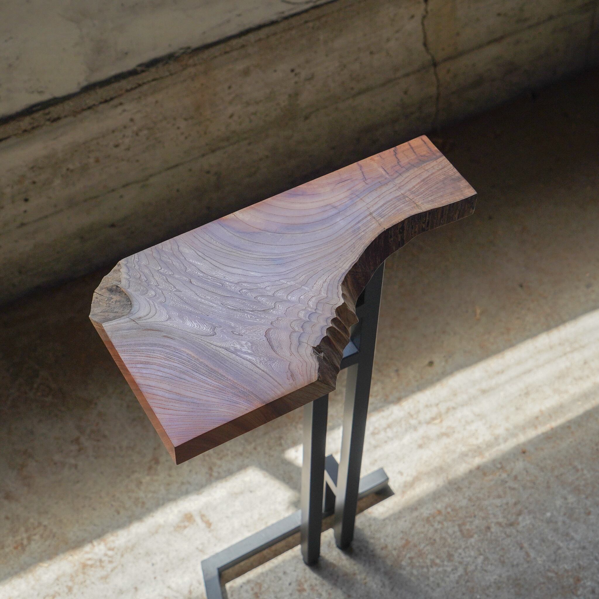 天板には最新のガラス塗料(木に含有される水分に反応してナノレベルでガラス化し水分を通しにくくする日本国内生産の塗料です。)を含浸させています。ウレタン塗装のような塗膜が無いので木肌本来の手触りで癒されてください。