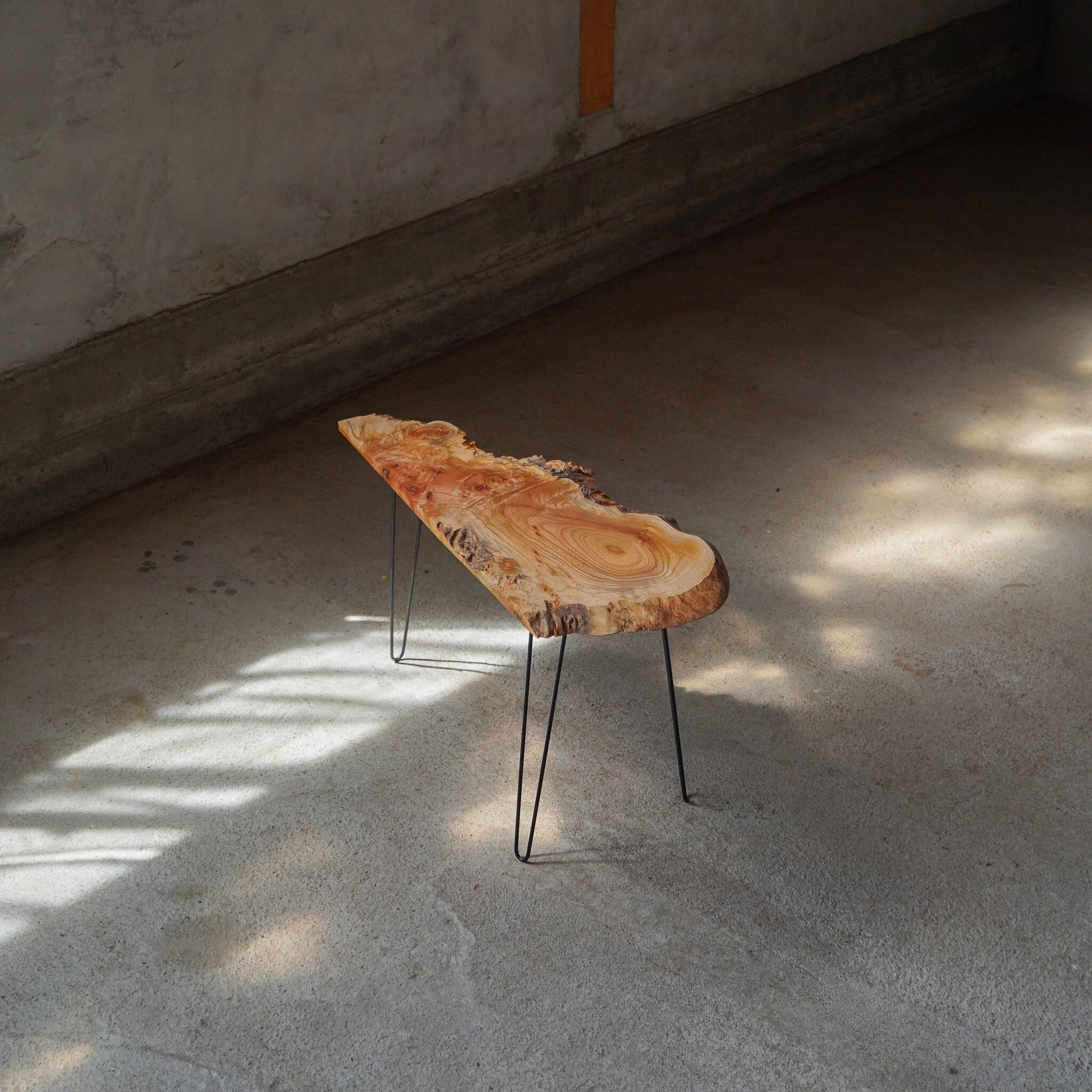 角を直角になるようカットしたケヤキで作ったローテーブルです。