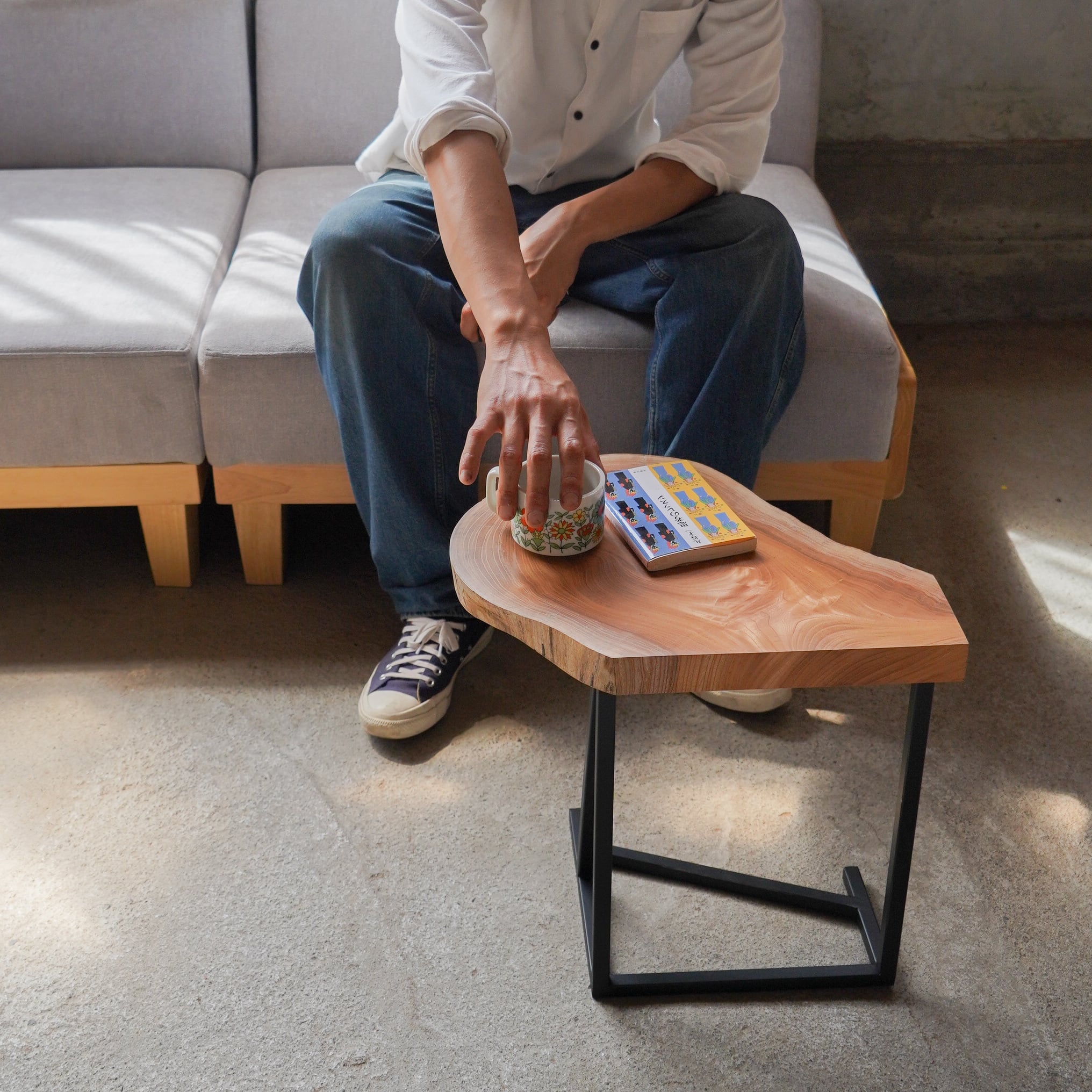 原木で購入していたケヤキのアタマ部分の輪切りで作ったサイドテーブルです。