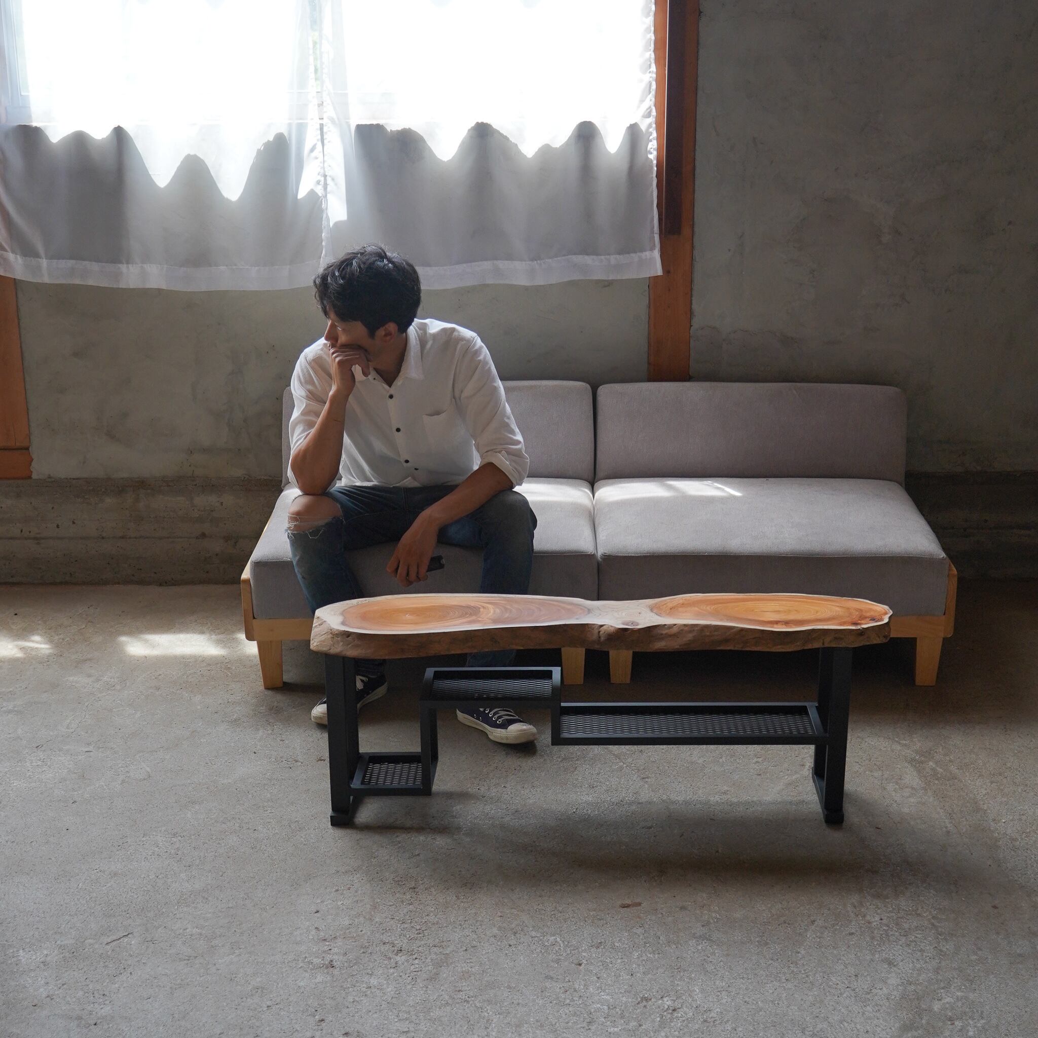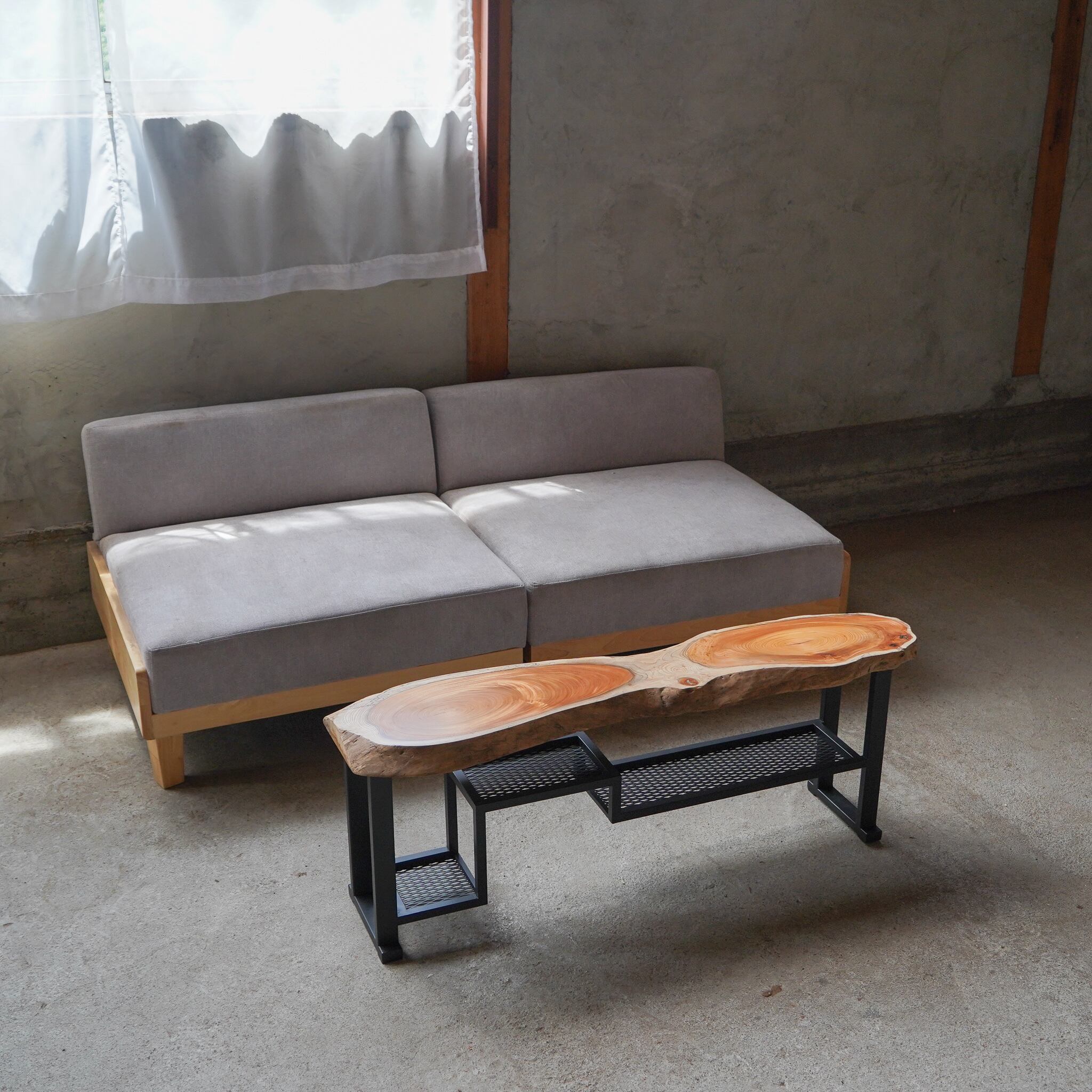いい感じのカタチをしたケヤキの一枚板で作ったローテーブルです。