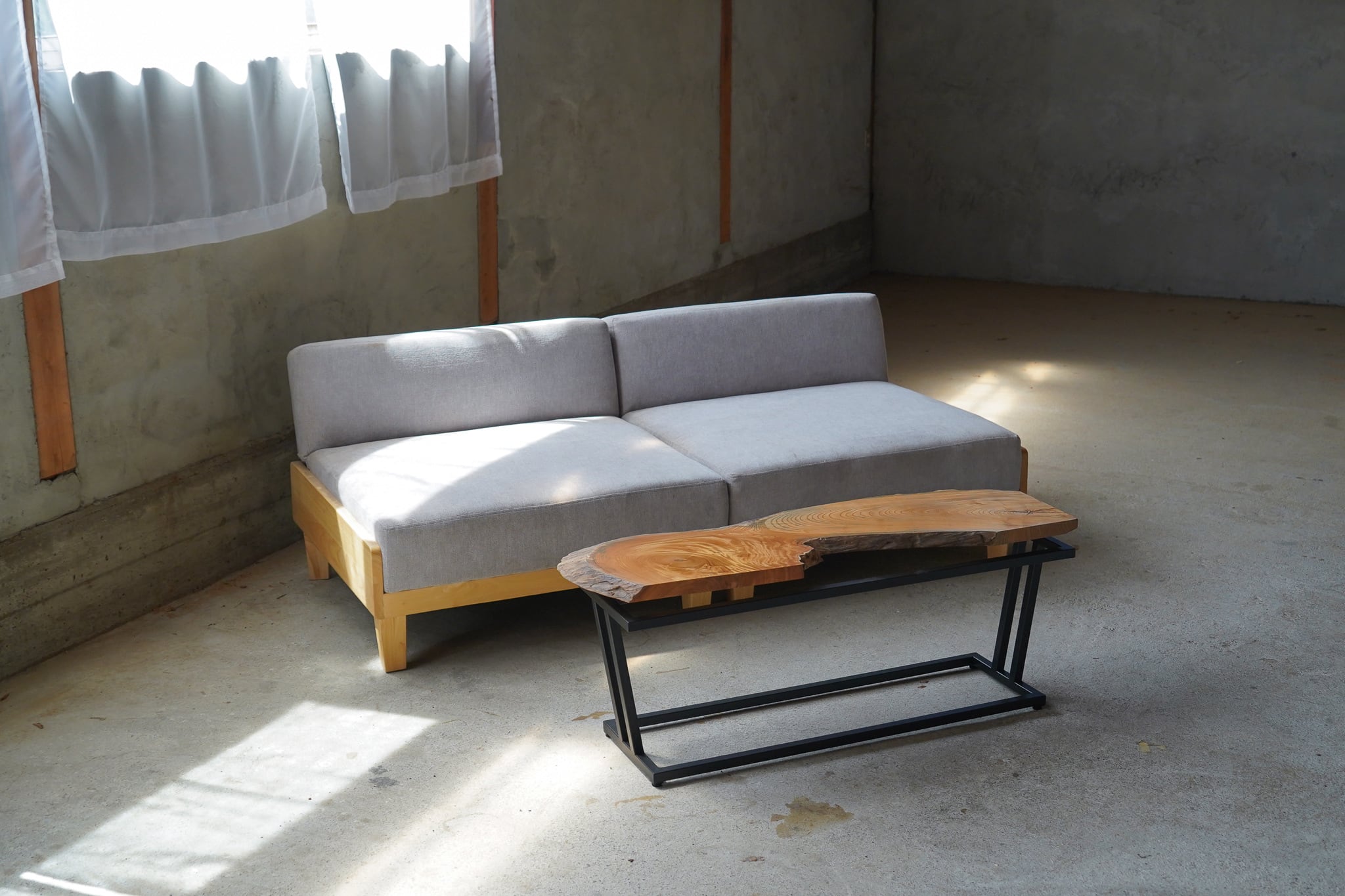 本材は私がいつもお世話になっている埼玉県の製材屋さんから仕入れたものです。その製材屋さんはセンスが抜群で(というか自分と合う)こういう素材をたくさん所有しています。本来であれば「何に使うか分からない」から二束三文で売っちゃうか、細かくしてしまうか、そんな素材なんですが、そこのオヤジ(78歳らしい)は自分でも家具や雑貨を作る作家なのでこういう材がむしろ好き、なんでしょうね。