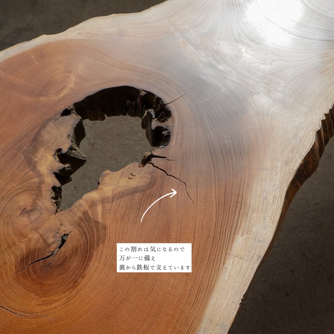 木の息を止め、木の割れや反りを極力なくす仕上げ方も可能ですが、それでは各々の木が持つ自然な手触りが失われます。