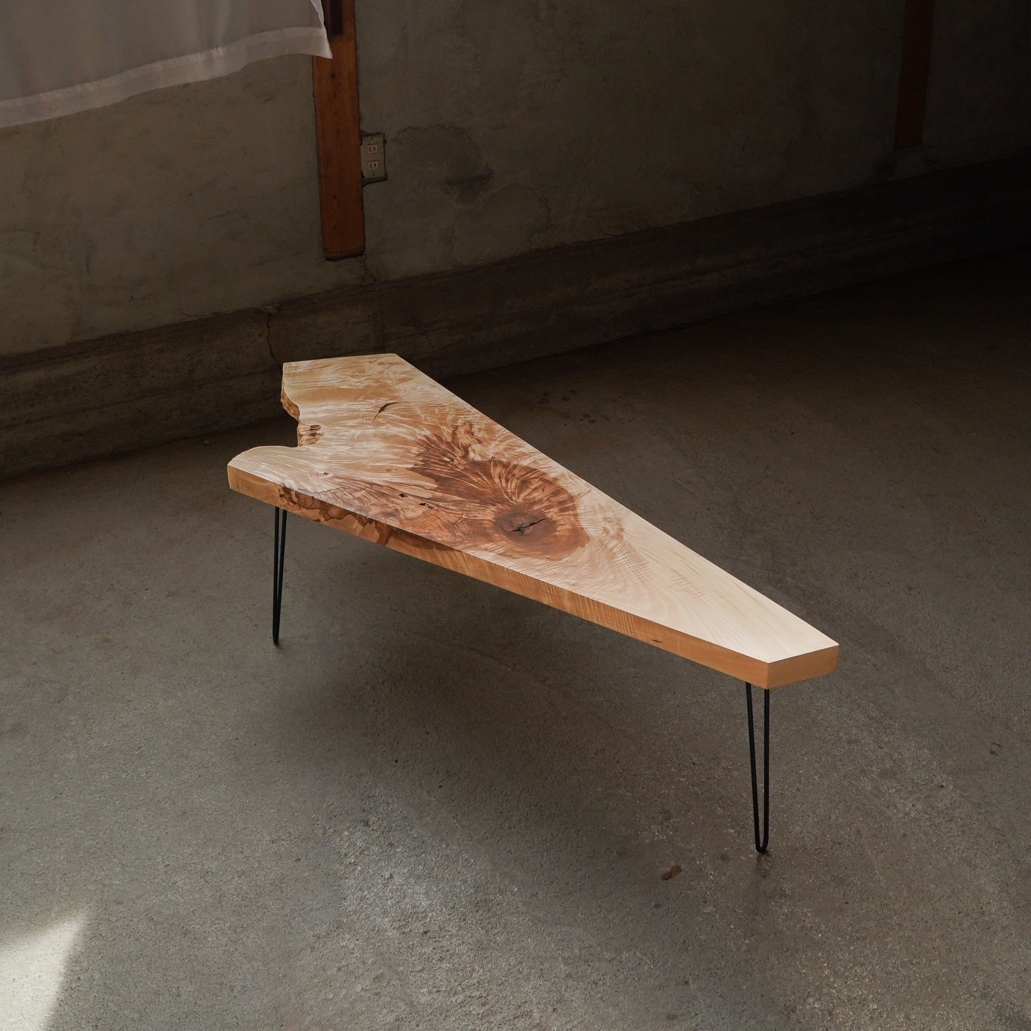 こんなに大胆にカットされた一枚板に既視感がないからか、「なにこれ?」感もあります。