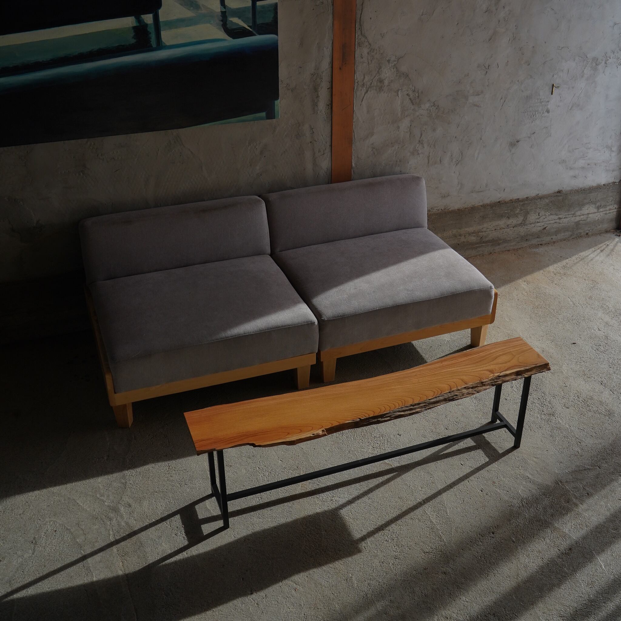 凡庸なというか一見するとどこにでもあるような欅の一枚板で製作したローテーブルです。ですが彼を埃っぽい倉庫の中で見つけたその瞬間、購入を決めました。